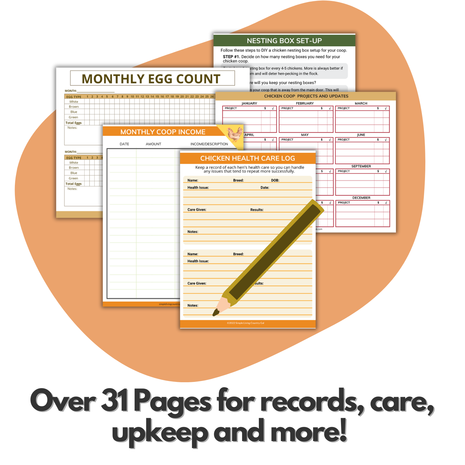 This is a convenient downloaded product, so you can print and use it to DIY your coop, begin record keeping, and raise amazing chickens!Â