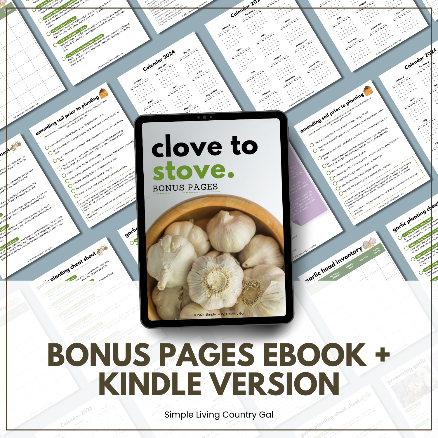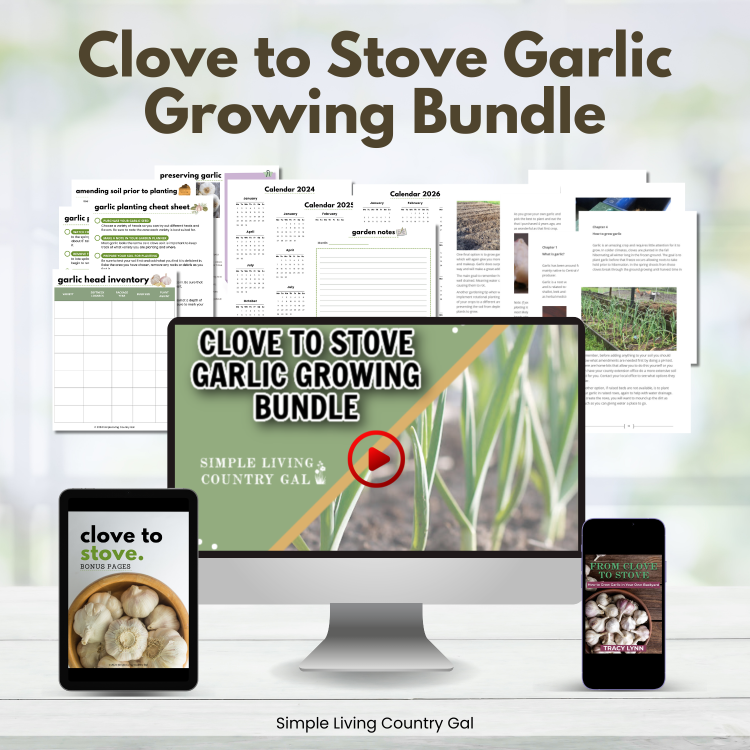 Clove to Stove Garlic Growing Bundle Your backyard. Your Garlic. Your Way. ?? Imagine cooking amazing dishes in your kitchen using home grown fresh, organic garlic. With the Clove to Stove Garlic Growing Bundle, you can do just that, no matter your skills are as a backyard gardener. Whether you’re a gardening novice or a green-thumbed expert, this bundle is designed to make growing your own garlic simple and rewarding.